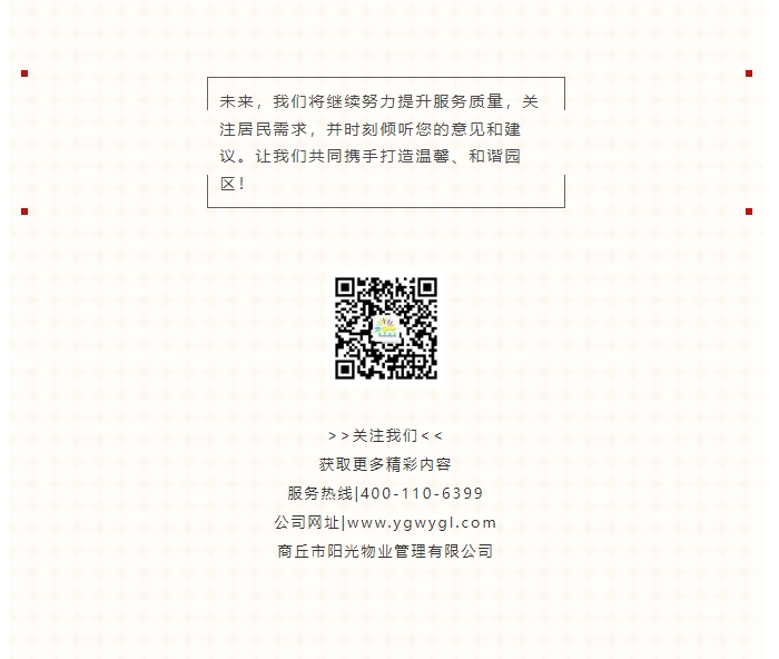 陽光物業(yè)成立于2003年5月,專注物業(yè)服務(wù)行業(yè)20余載,陽光物業(yè)現(xiàn)為河南省物業(yè)管理協(xié)會副會長單位、商丘市物業(yè)管理協(xié)會副會長單位,公司注冊資金1020萬元,陽光物業(yè)連續(xù)多年被河南省及商丘市評為先進企業(yè)、優(yōu)秀企業(yè)。