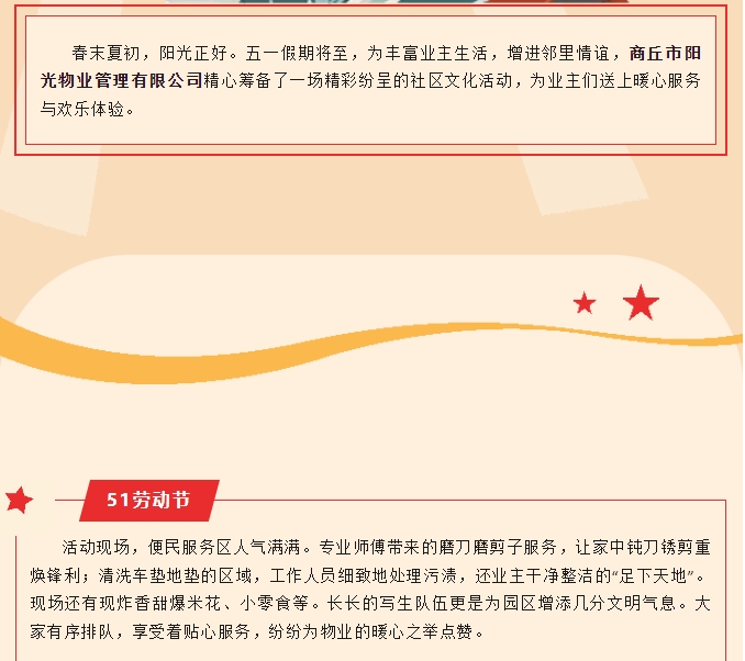 五一樂(lè)享鄰里情 陽(yáng)光物業(yè)暖人心-多彩活動(dòng)點(diǎn)亮社區(qū)生活
