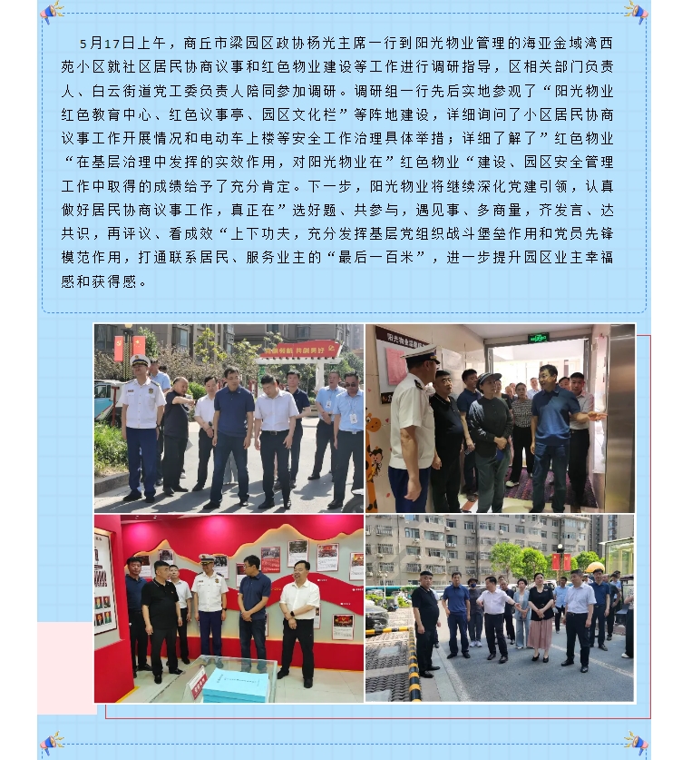 陽光物業(yè)成立于2003年5月,專注物業(yè)服務(wù)行業(yè)20余載,陽光物業(yè)現(xiàn)為河南省物業(yè)管理協(xié)會副會長單位、商丘市物業(yè)管理協(xié)會副會長單位,公司注冊資金1020萬元,陽光物業(yè)連續(xù)多年被河南省及商丘市評為先進(jìn)企業(yè)、優(yōu)秀企業(yè)。